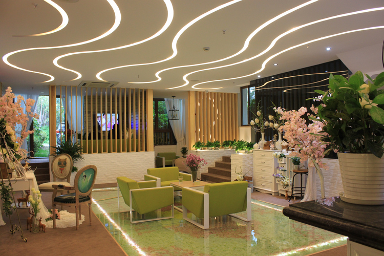 高端婚禮策劃品牌,以森林系,田園風,韓式和歐式為特色。所以其場地選擇也別具用心,隱身在在一處依山伴水的別墅小區(qū)里,遠離車水馬龍的喧囂。環(huán)境那就一個字,好。