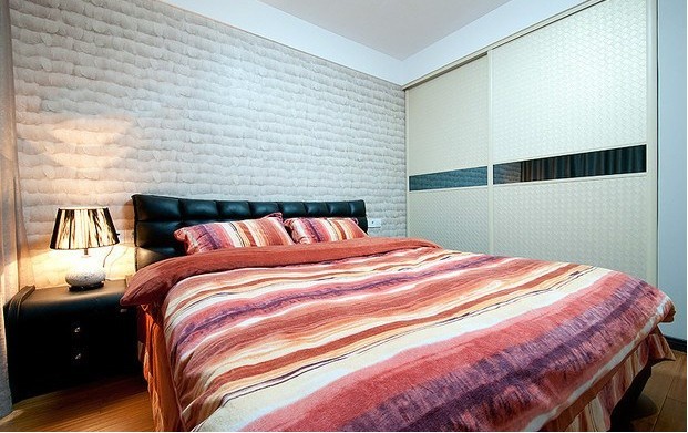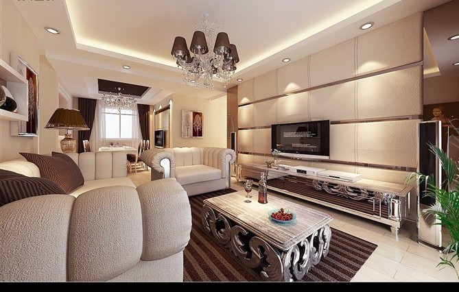 設計說明:本案是以簡潔明快的設計風格設計的一個平層居室。在功能方面,客廳是娛樂交友中心,影視墻采用了墻磚,既大方又氣派。地面選用了富有彈性,導熱率低與電視背景墻相似的木地板,更顯現代氣息。在組合上注意空間搭配,充分的利用了每一寸空間,且不顯局促又不失大氣。在選色上,一般選擇自然的柔和色彩,集裝飾與應用與一體,讓人處處感到浪漫主義氣息。